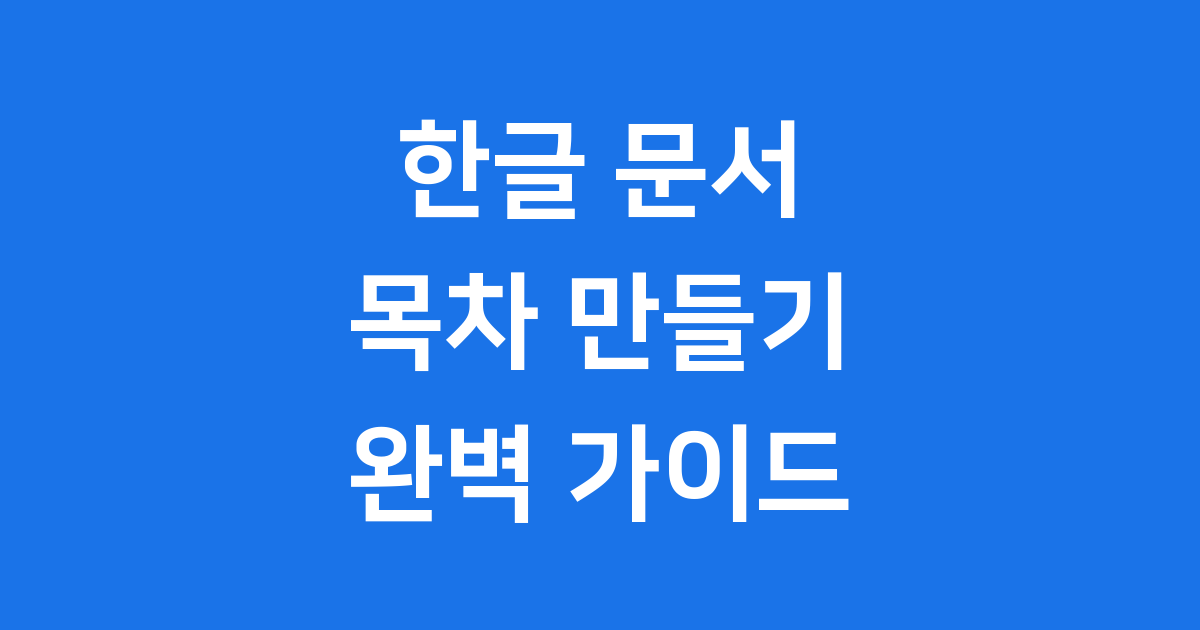 한글 목차 만들기 문서작성 핵심 가이드