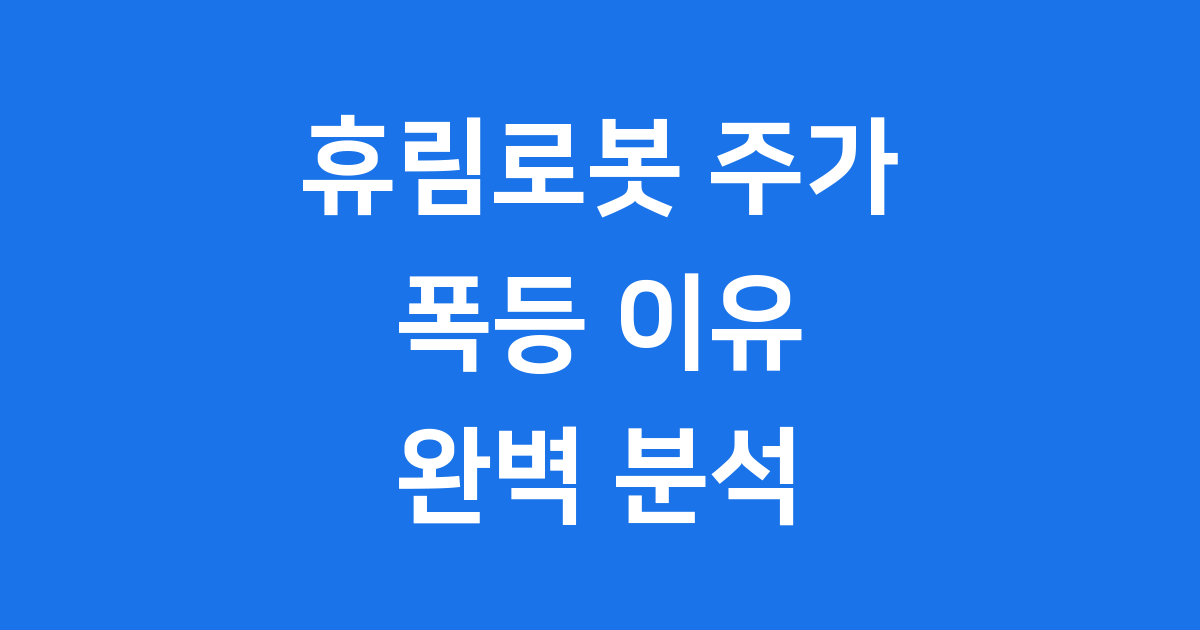 안녕하세요! 요즘 휴림로봇 주가가 심상치 않다는 이야기 많이 들으셨죠? 저도 이 소식을 듣고는 '도대체 무슨 일이 있는 걸까?' 하고 궁금해졌어요. 사실 주식이라는 게 하루아침에 뚝딱 오르는 게 아니잖아요.