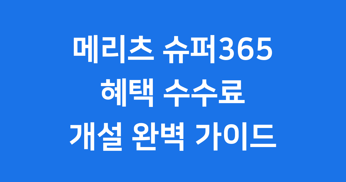 메리츠슈퍼365 개설방법 2026년 수수료 혜택